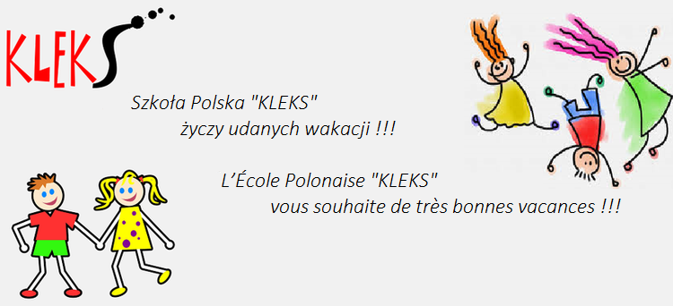 Manifestations Fin d’année scolaire à KLEKS Ania Le Mener — 22 juin 2017 0 0 L’école polonaise KLEKS fête la fin d’année scolaire. Au programme : spectacles des élèves, remise des diplômes et des prix, puis apéritif. Bonnes vacances et à bientôt en septembre !